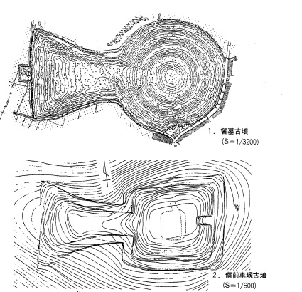 古墳時代の幕開けに影響を与えたと言われる弥生時代の後期の岡山県の楯築墳丘墓と島根県の西谷墳丘墓です。