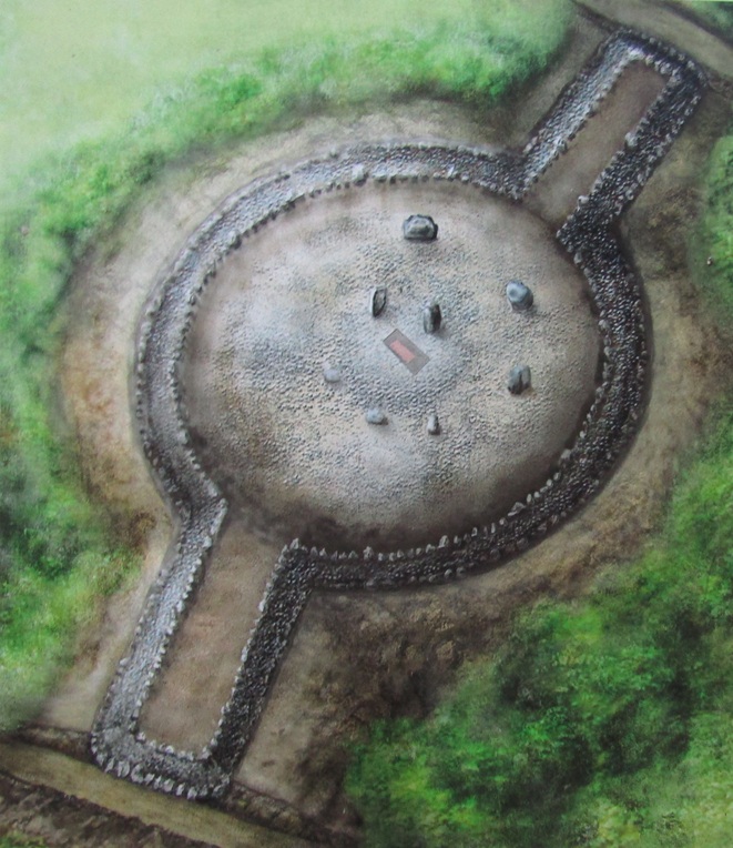 この形から、古墳時代の前方後円墳の原型とも言われています。この二つの突出部が墳丘につながる通路であったものが、前方後円墳の前方部になったとされています。
